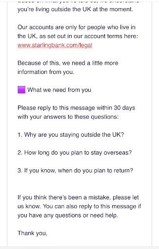 As regards to your reply back my card was not locked from drawing cash out of an atm.. My complaint was your lack of customer service incompetent staff for the record. This was not sorted until I got back into the uk by myself no help from you at all. I would never use starling again you ruined my holiday as I spent days and hours dealing with your customer service all giving me wrong information and worrying about money This is disgusting that you abandoned a solo travel abroad with no...