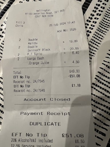 Read moreThis pub is across the road from Waterloo Underground Station. The decor is tired, and it is quite dark inside. The staff is confused and often provides incorrect orders. The place is busy with commuters and tends to have predominantly male customers. It is quite loud and has music playing. The prices are typically overpriced. I saw many people glance inside and then walk away to look for another venue. There is security around and customers have a bad habit of leaving drinks on your table when leaving. Overall, it is a poor experience that is more suitable for the brutish culture. Not...