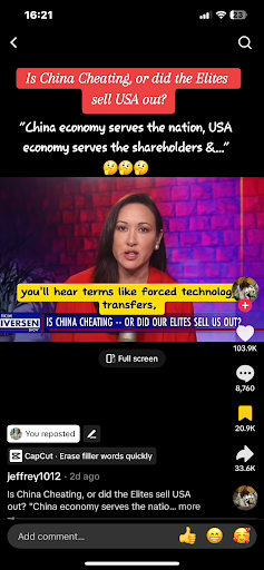 On my lodging an appeal against withdrawal of my comments, not only was the violation was not withdrawn but also I was given a warning that my account would be suspended and striked off. The vlog itself is about why United States could not prosper and why Chinese have touched the sky. What type of nonsense app the management of this app are running? In order to save itself from suspension in the United States of America, Tiktok has not only adopted a regressive but it has also a disgusting entity. I am 100% sure that the person tagging it as a violation was an American by nationality, because he or she responded back in one second. I have immediately logged out from my account as a protest against Tiktok attitude and they should improve their internal systems...