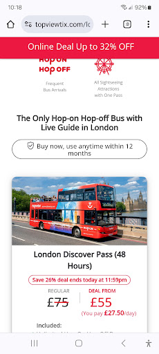 Read moreAwful experience with TopView! Choose another company if you want to tour London. The advertised schedules on their site or app do NOT match their actual schedule. The live map doesn’t work. River cruises cancelled without notification. The bus drivers and tour guides we asked didn’t know the basic operation schedules (what time is the first/last bus). We spent more time walking and taking the tube (subway) across town than the actual hop on hop off bus. Not reliable!