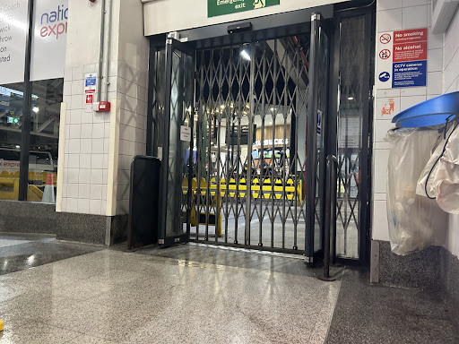 If you have never been here before, I will tell you that theres two separate parts to the station. I am here basically at midnight to 1am. One half was not in use but there was a Starbucks there so I went there to wait with many others who were (the platforms 9 and 10 have NO seating areas available). About 20 minutes later, someone in their wisdom decides, even with a lot of people waiting in this Starbucks, to shut off access to the first half of the station. This left me confused, but I had an hour to wait so I thought not much of it. Anyway, I observed as people decided to walk into the first half through the side entry doors to the coaches and staff simply told them they werent supposed to enter that way. So they were deterring people and asking people with their piles of luggage to go all the way round to enter back in again, despite being able to simply unlock the doors and let them in. I luckily slid myself into an open door after avoiding the heckles from a homeless man sitting by the coach exit and then a staff told me off for doing so???