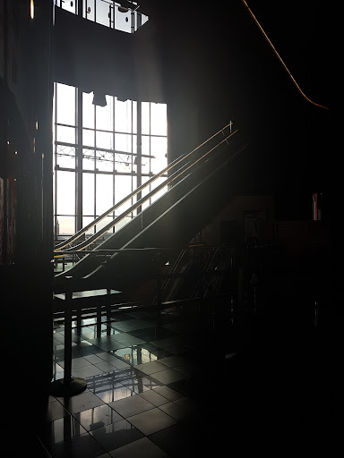 To start with none of the escalators work and after being there a few times and reading other reviews this just seems to be how it’s always been. This really needs to be sorted asap. There nothing worse than walking up 4 flights of stationary escalator stairs and feeling exhausted and lost for breathe before you’ve even reached your seat. There is barely any staff present so It’s a ghost town. No one seems to check tickets. This is irritating as a customer as if no one is checking then whats the point? It feels like anyone can just walk into a screening…maybe that could be a safety issue? Who knows. In every cinema I’ve ever been to there is normally always someone checking tickets. Every so often a member of staff would come into our screening and inspect it with night-vision goggles. It seems the priority here is combating piracy and not whether people have paid. It was very distracting and at times almost ruins the enjoyment of the film. This person came in a few times during our screening. Overall the screen was fine, the sound was okay and the seats were quite worn down and could probably do with replacing. It’s a shame as the location is fantastic it just feels really dumpy and forgotten about. I really want to avoid streaming new releases at home, I still enjoy the ritual of going to a cinema. During a difficult period such as Covid you would think that cinemas would make more of an effort to entice people back in. It seems that a chain like Vue couldn’t care less about upkeep and want to provide the bare minimum of a cinema experience. For me I will go here for the time being as its convenient but that’s about it. It’s serves it purpose but so does a ready meal. Doesn’t mean it’s always the best way to enjoy something. Maybe it’s my fault for accepting mediocrity for the sake of convenience and only change will come when I vote with my wallet and refuse a below average cinema going experience. Maybe it’s the only way to show the ‘big man’ who’s boss and get these multiplex cinemas to pull up there boot straps and give us, the customer, a quality experience that’s worthy of the price of admission….or maybe not. Maybe that’s life. They win in the long run and we compromise our values for the sake of comfort and convenience because really when the market is cornered by mega corporations what choices are we left with? who really wins in the end? Who knows. At least fix...