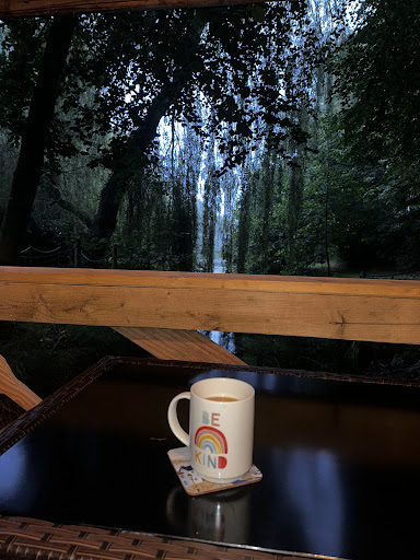 We (a couple) decided we needed a quiet break away following 4 family bereavements and and my partner having cardiac arrest so we booked to stay in the treehouse on Easter weekend and boy it did not disappoint. The treehouse was perfectly clean and well equipped. The fairy lights at night were pretty! I had a full nights sleep for the first time in months. The bedding and pillows were comfy and despite it being cold outside at night the inside warmed up well with the heater on. The outside kitchen was great, we cooked meals with no issues at all. Everything we needed was to hand and there was a large dining table, although we took to sitting at the edge, overlooking the lake. The complementary fresh eggs were a welcome touch! The shower room and toilets were close and spotless. On site there was ample parking close by, plenty of animals to make friends with and although a little muddy underfoot we survived with no wellies but I would take some next time. The lake was incredibly peaceful. Hosts were very friendly and were on hand should we have needed anything. All in all we had a wonderful weekend and would love to return and stay at the lake...