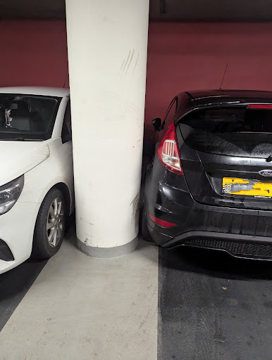 We were told by a helpful attendant (poor chap, difficult job) to double park, leaving just enough room for a car in a bay to get out, but narrowing a corner turn for cars moving around the car park. We did so as we were desperate, already late for the theatre due to horrendous traffic getting in to Manchester, having allowed 2.5 hours to get from Huddersfield . Also, we had no idea how long it would take to find another car park, in a one way system in the centre of Manchester.
