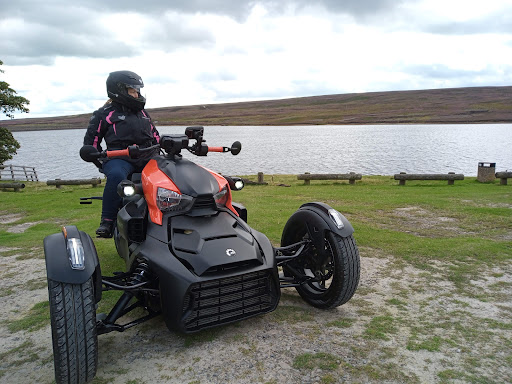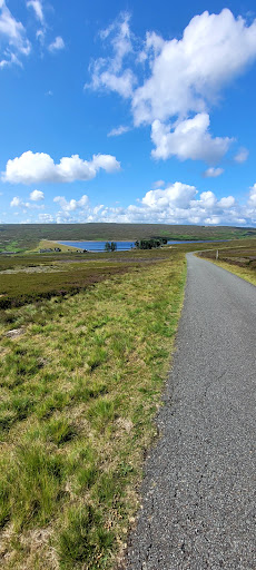 Read moreGoogle maps show's car parking beside reservoir but be WARNED small sign at top of road say's private road didn't notice this sign and when I finally had room to turn around the gate at the top was closed and locked by a post office delivery van driver who passed us and locked it. Luckily had enough room to squeeze around on bike...