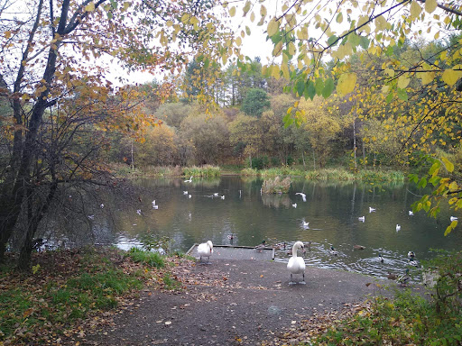 Quiet area slightly away from city center. Favourite place for dog walking or fishing. There is a big Carps out there , Roach and other species , just remembered to obtain a permit ,and bring a landing nett and a landing matt as it's catch and release type of place. Multiple fishing spots around whole pond , usually not a problem to find a space for fishing or just picnic 🧺. Nearby playground it's a beloved kids attraction, so pick your favourite. Cycling paths all around this area will take you to any direction. Remember not to feed wild birds with white bread 🍞 , go for something more natural, like corn peas or seeds it's better for them. And they will follow you around...