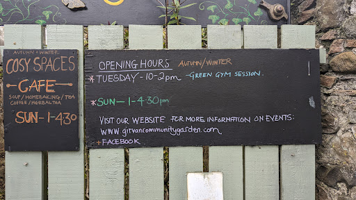 Fantastic hidden gem. If you are looking for a light lunch at the weekend then bypass the cafes and go here. Interesting community garden with mucic events. We went on a Sunday and there were an informal music session with three guitarists. Tattie scones and coconut and lime cake was yummy. Pot of tea for two, two lots of tattie scones and two slices of cake for £7.00. amazing. I have an allotment so I am always interested in community gardens and this is the best I have ever visited. The staff/volunteers were excellent and the home made products out...