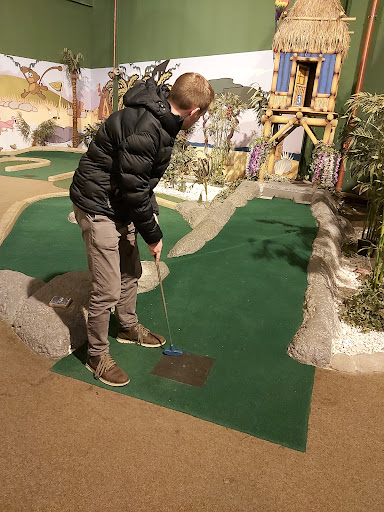 Read moreWe went at lunchtime on a Friday during the school holidays. It was £26 for 2 adults and 2 kids for one round of 18 holes. We played course 1. It was very busy and we had to wait 10 minutes. The staff made sure the"tee off" times were staggered so that play moved freely once we started. The course hasn't changed since we were last there and overall is still maintained quite well. A couple of the interactive weren't fully working( where an animatronic character appears from a hut dependent on how well you've played a shot. ) However overall we enjoyed it. One of our party won the 19th hole trick shot and one of the staff promptly appeared to give them their free game token. One of our party played the lazer maze game for £2 in the arcade which they enjoyed. The toilets were clean and well maintained also....