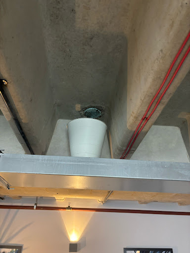 The only restbite you get from the cold is in the residents lounge downstairs, which was a selling point to us for coworking space. But here you'll be greeted with the constant sound of dripping, damp spots etc as the building as lots of leaks which apparently can only be fixed if they rip up all the street outside.