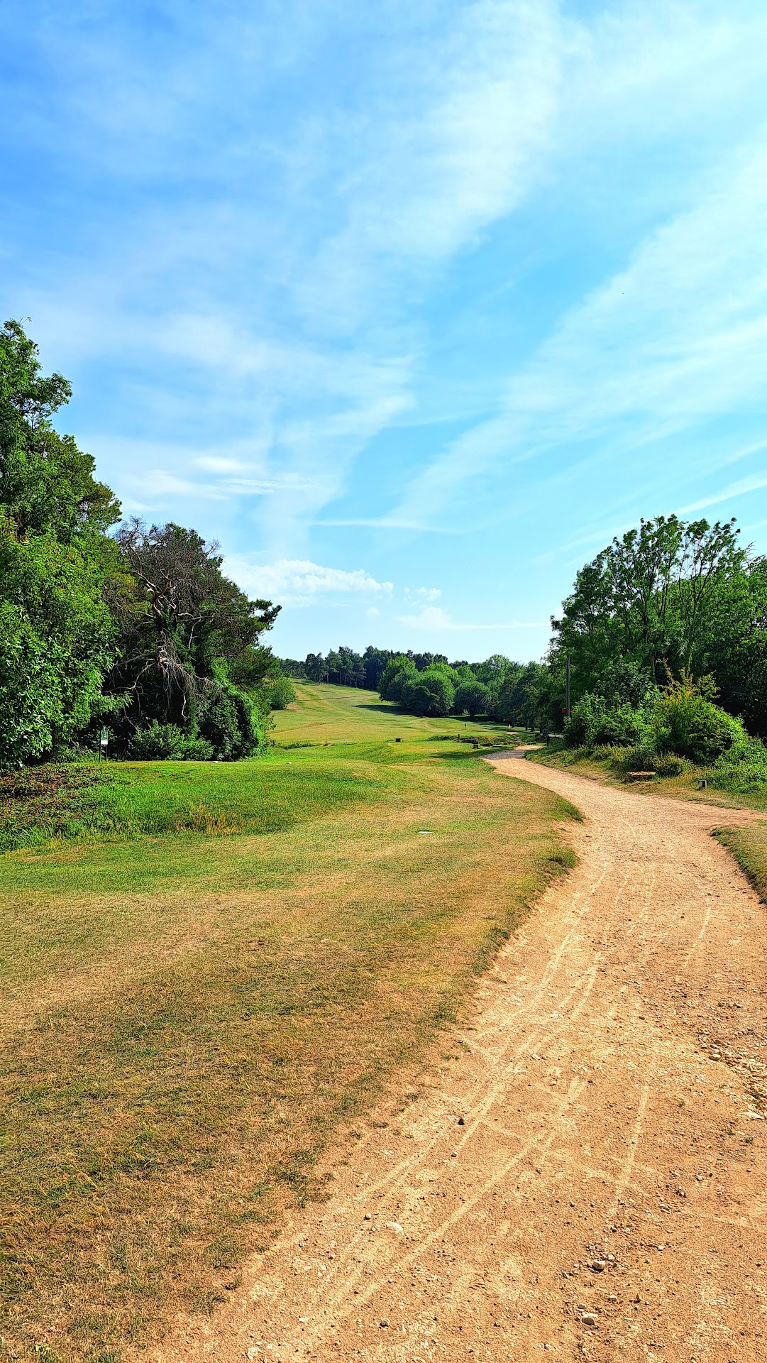 The potential downsides... Some of the routes between green and tee are hard work with a trolly. There are dog walkers and ramblers on the course.