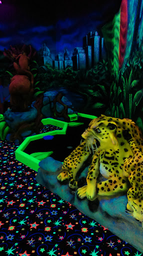 Proceeding to the glow golf the only aspect of this which was at all interesting was the flooring. Having to wait 5/10 minutes each time for people to finish their turns and nowhere for you to put your belongings so carrying bags etc.. with you the whole time unable to putt properly due to not having anywhere to put your stuff incase of theft due to how dark it was. The end hole going " waa waa waaaaa " was really aimed at the whole game.