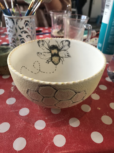 My daughter and I went to a ladies evening and it was brilliant. We got cheese and crackers, grapes, crisps and wine, juice or tea or coffee. We can collect our painted pottery this weekend and I can't wait to see my poppy bowl. Definitely worth a visit.