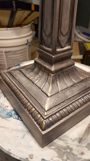 Cyndi, the owner was warm and very helpful, and carries new and unusual products. She demonstrated her Nuvo mousse and l bought 6 colors! After painting a formerly dark brown lamp, l rubbed on the black and copper colors. I love how it turned out, and it changes color in the light. Also spiffed up some chicken wire with the coral calypso to enhance my fall hanging wreath. She is a cut above....and do give her kitty some lovin' when you stop by. Feels...