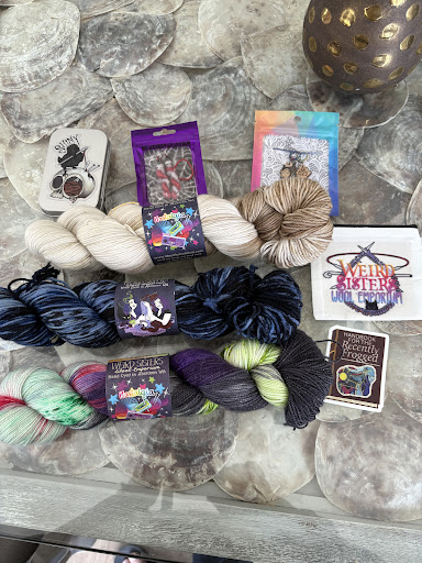 Outstanding amazing MUST-STOP yarn shop!!! The yarn is all local hand-dyed, and the colors are DIVINE, very imaginative, magical, and overall too much fun. It's all organized by various fandoms: Harry Potter, LOTR, ACOTAR, and many more, plus gorgeous witchy vibe collections. The shop owners also design their own incredibly artistic stickers, enamel pins, and custom fabric bags! The whole shop is an insane explosion of creativity, so inspiring. The shop itself is adorable, it's inside an old house and has shop space up front, cozy knitting space in the back, and dye studio upstairs. I couldn't decide/lost my mind, grabbed an armful of yarn, and discovered that there's a special in-store deal for out-of-control people: buy 9 skeins, get the 10th free!! So awesome. The yarn is very well priced for the high-quality bases, with lots of merino options blended with stellina sparkle, merino, cashmere, yak, silk, etc! The shop owners, predictably, are very friendly and super cool.