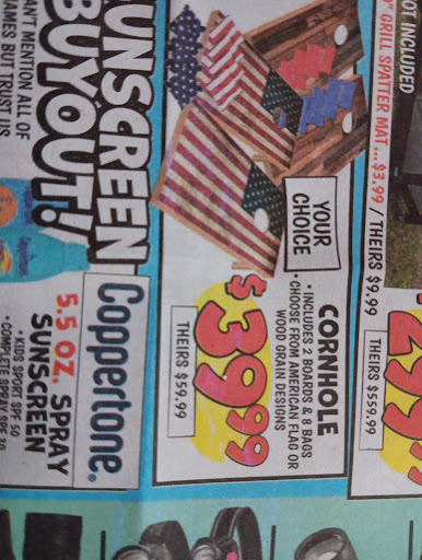 Read moreFirst time in Ollies, been shopping for a corn hole set, memorial day and we planned a BBQ and went for this great deal. Turns out in the store it was $20+ more. I didn't see the flyer in the store, there was a huge line and the store manager was such a nice lady I didn't want to bring it up. I side the store seemed a tad discombobulated, chips stacked next to lawn chairs next to motor oil and kids toys. I'll have to go back when I have more time to look...