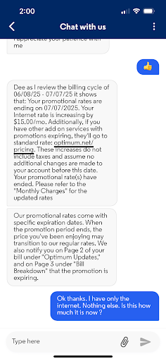Ā Ā Ā Read more*Final Update 10/12/2024 Keep it short and simple, if you want to see if you can get a better deal or package ask to be transfer to the retention department, or threaten to cancel, don't waste your time with customer service chat or phone the retention department is who you need to talk to because they are the one who wants you to stay if you try to cancel. I already went with a different service but once I tried to cancel, the retention department tried to do everything in there power to keep me to stay but I don't want to have to deal with this over and over.