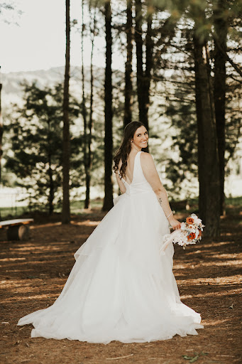 When I put on MY dress, she could tell the vibes were there⊠She handed me a bouquet and placed a veil and let the magic sink in. When I looked in the mirror, I saw a BRIDE staring back at me. It only took 3 of Tiffanyâs dresses to find THE ONE đ„° After the tears and the feels, she celebrated with us and gave me a bell to ring! đ„č She let me enjoy the moment and didnât rush me to take the dress off or jump into finances right away. She ordered my dress and had me pay for 1/2 up front then the other 1/2 once it arrives. She doesnât do alterations herself, but has reputable people to refer you to! To seal the deal, I took a pic with the pups and signed my name on a dress of all the brides who have shopped with her đ©·