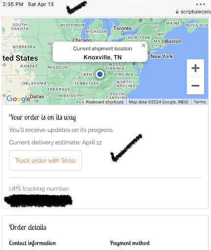 Read moreGoogle review rating was ok so thought safe to order. First time ordering from this company and upset! Initially wasnât going to order since you have to PAY SHIPPING regardless of how much you order. Placed my order online 4/09/2024, paid $7.15 shipping fee, and told est. delivery date was April 12th with Priority Shipping. I was so excited because I also ordered some for my superviser at work. As seen in the photos, itâs now April 13th and I have NOT received my shipment! Also notice that the products arrived in my city ON April 12th (showed blacked out for my privacy) and now has left my city heading to who knows where! What the heck! My address was processed correctly so why did I not get my shipment when it arrived in my city only mikes from my home?! They have my money but I donât have my merchandise. If they make this right by sending me my order AND refunding my shipping I will update my review otherwise, be careful ordering from...