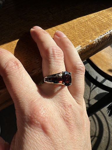 I left with them my Movado watch to get the battery replaced and one of my mother’s rings - her most precious, most loved garnet ring, to be assessed by their jeweler as it was in quite bad shape. Because of some unexpected additional expenses I chose to defer the repairs by a month or two, and thanked them for their evaluation time.