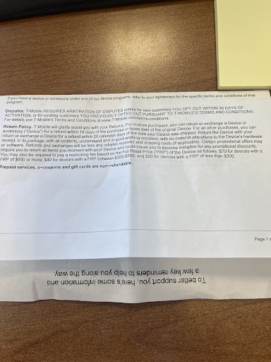 Read moreWORST PLACE EVER! Been scammed by these people twice now. The dude who tried helping me, literally made me feel so uncomfortable and when me and my boyfriend walked in, we told them what we were trying to do, he acted like he understood, then next thing I know, he just puts us on a plan without consulting us about it and put protective ins on a SIM card FOR A PHONE WE DONT HAVE, and his exact words, â I put yall on this plan and put protective ins on this so my commission doesnât get docked. â And I should have known from the beginning that, that was something sketchy. Well, I went back there this morning, to return what I had done over the weekend, for them to tell me itâs non refundable. NOWHERE IN THE REFUND POLICY DID NOT SAY IT WAS NON REFUNDABLE. When I had asked him about it, and told him it wasnât in the refund policy, he said â yeah it doesnât have it in there but itâs store policy and itâs non refundable â and like I said, this isnât the first time they have done this to me. But I gave them benefit of the doubt. After this, I will never use Tmobile ever again. All they do is lie, give you the run around, and apparently just put you on a plan for their commission purposes. All I was trying to do was move from a family plan to my own plan. I didnât even need an extra 3rd line, but thatâs what I ended up with because of the dude working there. Needless to say, I called customer care and they gave me my refund since it was not in the refund policy. (: but we will be switching phone...