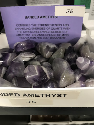 First time visiting, very Impressed with selection of all things for sale. Natural clusters, fossils, novelty carved stones and cute things, smudging supplies, nice wall of tumbled stones. I'd have to say best MYSTERY bags I've ever purchased! I can't wait to get another! We also got a little WELCOME gift 🎁 😊 small hold up at checkout because we had to remember all the names and prices of stones and had to go back to look. I am happy with the prices and selection. Beautiful pieces and made us Happy! Thanks Momma's...