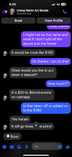 Read moreGirl told me $180 after the tattoo was finished it ended up being $280 the tattoo she gave me was small and was not worth $280. The tattoo is nice and it was my first tattoo but she could’ve stood on her price instead of changing it. I will not...