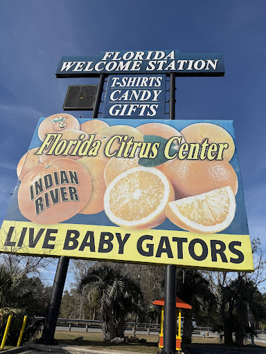 Nice place to stop. They sell souvenirs ranging all sorts of prices, as well as snacks, drinks, orange juice, and a variety of citruses. Their merchandise starts at $0.99 and can go up to around $70. The staff is kind and take their time to assist you, as well as try to fix or help any complaints you have. They're very patient with customers, too. While the 13 foot gator is taxidermy, they do have some live baby gators that they rent from Gatorland that are checked up on and fed weekly. The main thing they sell is citrus; navel and valencia oranges, honeybell tangelos, ruby red grapefruit, and varying tangerines. The pre-bagged fruit starts at $16.95 and goes up, which are rebagged and checked for bad fruit daily. The loose fruit is $3/lb and is also gone through every day to assure that customers don't receive or find rotten fruit. During warmer months they also sell coconuts, watermelons, mangos, and peaches. Some of the downsides are that while they do state that they close at 8pm, they typically close 5-10 minutes early so staff can go home on time, they aren't always able to regularly check bathrooms on busier days, and some items are more than they're worth. Also, while they are named "Florida Welcome Station", the offical one is on US-441 off exit 404. Otherwise, definitely recommend taking the...