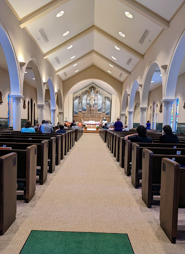 Located in a lovely neighborhood just off a busy avenue. It's a good looking church from outside with limited parking (mostly street parking). In the main entrance, the baptismal font is open/full . The first thing that struck me when I walked in was the organ pipes where the altar is (or should be). No Monstrance or Tabernacle in sight, and the crucifix blends into the pipes. I have mixed feelings about this. There are very nice stained glass windows. Turns out the Tabernacle is in a small chapel behind the organ pipes, entrance to the right. Sounds travel well, people walking about and talking loud made it seem irreverent (not talking about children, but adults). Not really a fan of the building, unlike the beautiful St Joseph's downtown or Our Lady of Sorrows across the highway.