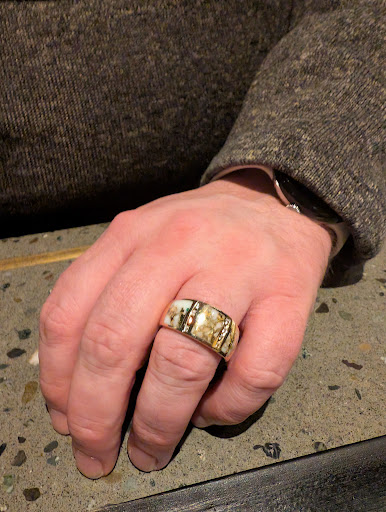 Heather also helped us design my wedding ring for our 30th anniversary when we renewed our vows. I had a simple band with the three stones from my fathers wedding ring, which I wanted restored and passed on to my nephew. They worked with us to restore that ring beautifully and Heather’s design on my new set is stunning.