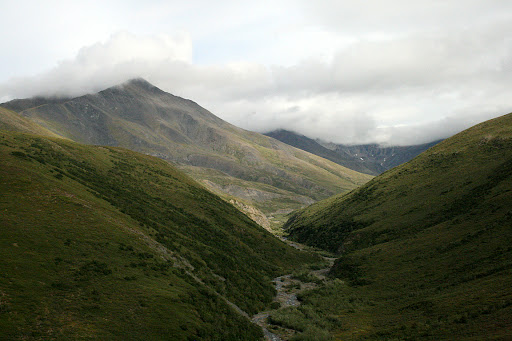 A high point on our travels along the Dalton Highway. A pretty steep climb into the clouds put us on top of the Atigun Pass. As we continued through, we encountered dahl sheep climbing impossible rock faces and then shortly emerged at a viewpoint looking down into the valley and far along the brooks range. With the treeless state, all of the mountains seemed much larger and grander and we had beautiful weather for the journey. Truly...