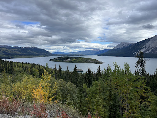 Yes, it's an 8 hour excursion but I can't imagine not doing this entire trip, going around Bennett Lake and getting the full experience was incredible. And I thought there were enough stops along the way to break it up. We chose to go up on the bus (tip: sit on the right side if you do this). It was a bit foggy and raining but it didn't prevent us from seeing most of the landscape. And speaking of landscape, you really go through all different kinds which was really cool. We also stopped along the way to get out for photos at scenic spots, including the Welcome to Alaska and Yukon signs. Oh, and we stopped to see a cutie (bear) enjoying some breakfast. Before ending the bus portion we went to Emerald Lake which was super pretty. Once we got to Carcross we had 45 minutes to walk around before the train arrived. We grabbed a snack at Caribou Crossing Coffee and had the best London Fog latte, still thinking about it. We also went to Maple Rush where we sampled many maple syrups, think whisky barrel aged, and of course left with a few.