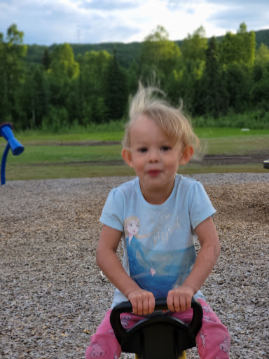 Hidden gem. Very accessible not in town and a absolutely fantastic spot to host parties or just stop and let the kids play. Bella love the swings, and bringing her bike to ride on the basketball courts. This is our favorite playground to play at in the fairbanks area. We have to stop here on a daily basis almost even if it is for just a quick play. The fox general store or fox den is close by for a snack...