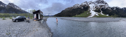 All of my friends and I are on an Alaskan journey this summer and while in Seward we were wanting to have a relaxing evening, and you dont (or at least I dont) instantly think of Saunas (let alone mobile Saunas!), especially in Seward But, am I glad we found Seward Saunas! The process was surprisingly simple, All we had to do was pick the day we wanted and where we wanted to go! They were able to give us a great recommendation for a location (we didn't have a campground or cabin), they told us they could take the Sauna to the Braided River outwash plain. It's a beautiful gravel bed in the middle of the mountians, with several rivers that come out of Exit Glacier! They just dropped the Suana off for us, told us everything we needed to know, and just like that, we were in full vacation mode! There are big windows in the saunas that allow you to still fully immerse yourself into the Alaskan environment while using them! Mountians surrounding us, Eagles flying around us. It was fantastic!