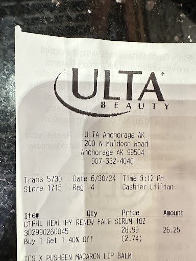 I have natural African American Hair and was sadly approached with all the right styling techniques for Caucasian hair. It's sad that we have such an issue trying to find stylist these days that understand how to manage non-caucasian hair. I went in and asked for a stylist that has experience with my hair type and they happily pegged me with the only African American hair stylist they had there.They must have assumed because she is black she knows how to deal with natural hair. I wish that were true, but honestly it doesn't matter the color of the stylist some just do not take the time to learn how to deal with all hair types. I knew the appointment was going to go down hill when she pulled out a small tooth comb and proceeded to comb out my hair from the ROOTS! I nicely commented on the comb not being for my hair type and asked for a wide tooth comb and that she comb it out from the ends to the root. SHOULD ANYONE WITH CURLY HAIR EVER HAVE TO TELL A STYLIST THIS! the appointment was filled with me having my hair painfully detangled and flat ironed with a Chi flat iron tool only meant to be used in wavy to straight hair. My hair looked so horrible I asked her at one point to stop and that I would go home and finish it on my own. She then got with a manager that allowed her to open up another flat iron tool that was slightly more suitable for my hair texture. The stylist continued to comb out my hair from the roots and could not see that she was tangling my hair in the process. I commented on it several times but she continued to reassure me that the comb was in fact suitable for my hair. If you have tightly curly hair and especially kinky curly hair, run from this salon as it if were fire. I had to even ask her to use heat protectant on my hair! So if you value healthy hair and love your natural curls do yourself a favor and watch a couple YouTube videos on how to accomplish your desired style on your own. The overall experience was horrible. I even had to listen to other stylist and customers comment on how bad they felt for people that had Afro-puff type hair. I heard multiple derogatory comments on curly hair while I sat there so the message was clear, ULTA in Anchorage is not welcoming for non-caucaisan hair types. I only wish I could rate this with a zero stars. For anyone out there with curls, dry hair, straight hair, wavy hair, oily hair, fine hair, thick hair, kinky hair and, you name it kind of hair... embrace it! We are all beautiful! Spread the message that ALL hair types are beautiful and avoid businesses that refuse...