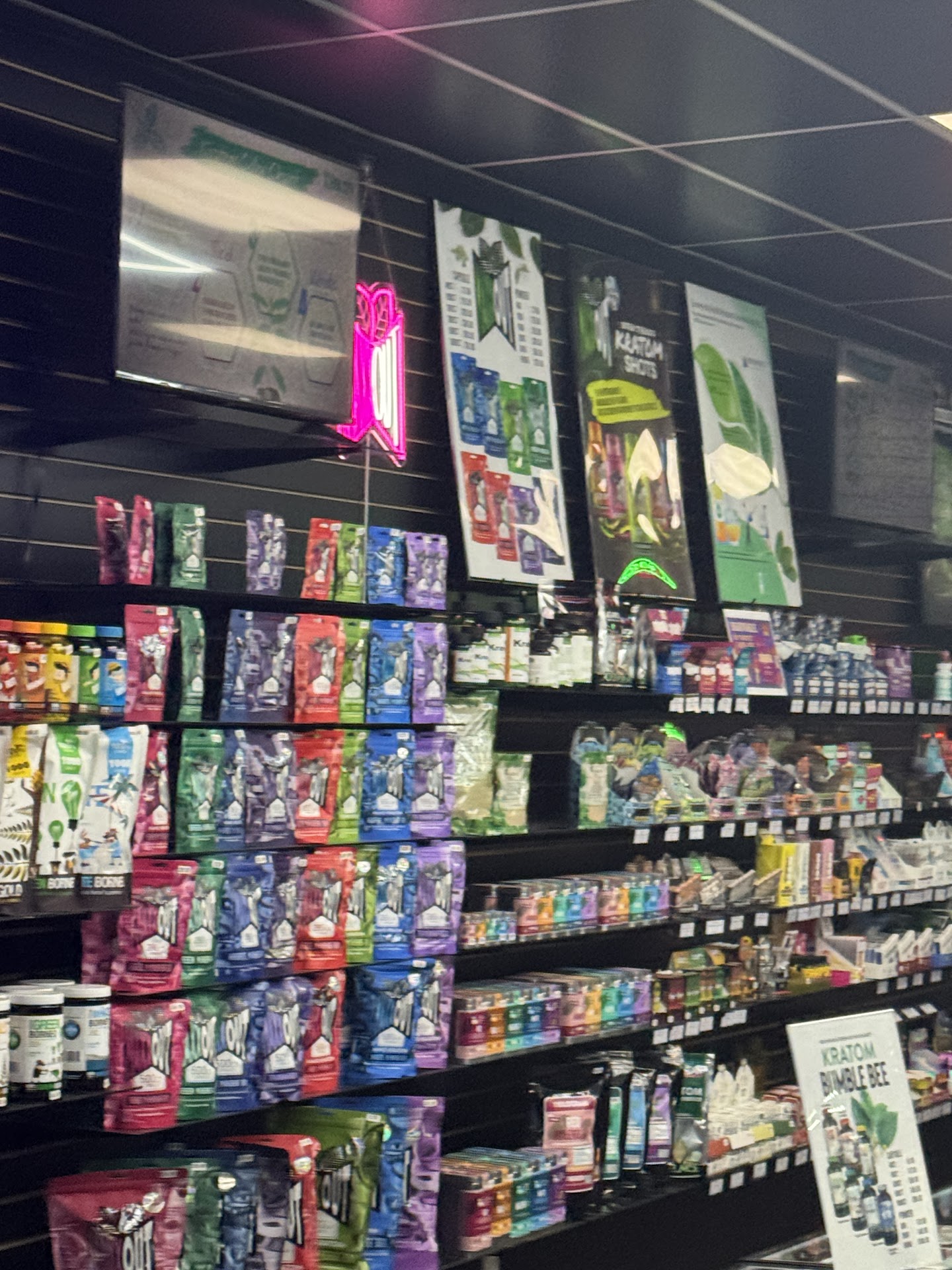I was really impressed that they carry kratom (7-oh), and they have the lowest prices in town. They stock some solid brands like 7OHMZ, PRESSâD HYDROXIE, and OPIA. On top of that, you can find some cool mushroom products and MJ Arsenal glass here.