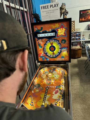 Read moreStopped in thinking this was a run of the mill gaming store but it’s really more of a communal tabletop gaming space with a bit of merchandise and some good snacks. Love the “unplugged” vibe and the retro pinball machine. It’s pretty empty in there because they want people to feel comfortable to use all that open space for games. The employee was super nice. He invited us to play D&D AND offered to show us the ropes. I’ve noticed at other places you have to bring your own group if you want to play so I loved that they were willing to get us all...