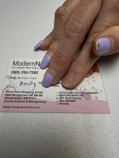 Read moreThe reviews for Modern Nails sounded great, so I tried them for the first time for a gel mani/pedi. I had an amazing pedicure with Vicky. She was gentle, patient, and did a fantastic job on my toes. The lower leg massage was a nice addition. Even after a month, my toe nails still look newly polished! Vicky earned a 5 star rating!