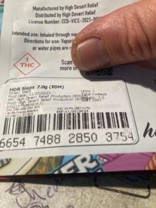 Read moreDear Mr Clinton Greathouse ( owner of Pecos Valley) , left a message also on your page as well hoping you'll see this~I just got some SLAPZ and got home...it was so dry it turned to dusty powder when I barely touched it... it tasted like burning leaves and bitter grass, the worst homegrown garbage I ever smoked yet and then I noticed on label sticker it has been sitting on their shelf for almost 4 months and unfortunately they will not reimburse you so BUYER BEWARE ? they all are so I also noticed there is another label sticker under the one on top ( maybe you can also see it )? so maybe it's even older than the newer label on top? . PLEASE check ALL DATES on anything these guys sell..even the manager said he was trying to get it pulled??? after I bought it? uh...just take it off the shelf and you won't get reviews like this I say. I will never come back because of this unless they do a change out. a good manager would have fixed it and exchanged it for something a little fresher perhaps of same price range? CHECK YOUR DATES !!!... shame on you pecos valley !!! feels like robbery without compensation and should be fixed, after all, We the People are...