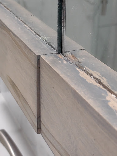 You can see the quality of work and installation in the photos below ( I have many more I will gladly share) of the installed medicine cabinet. They cemented it to my parents adobe wall making it impossible to remove without significant damage. The large bolts that protrude inaccurately through the back of the cabinet don't have nuts on them, I guess because of the cement and the fact their measurements caused them to drill into the cabinets sides. The claim was "it isn't finished" and stated it would still need to be restrained and "fixed" insight. This never happened and multiple appointment to do so were missed. My parents weren't ok with someone staining something as it hangs on the wall in their new bathroom, but gave multiple opportunities for the wood repairs. Aside from the poor fit and finish you can see the mirrors edges are unfinished and sharp. It has already resulted in a family member cutting themselves. We will remove the doors and have them rebuilt and...