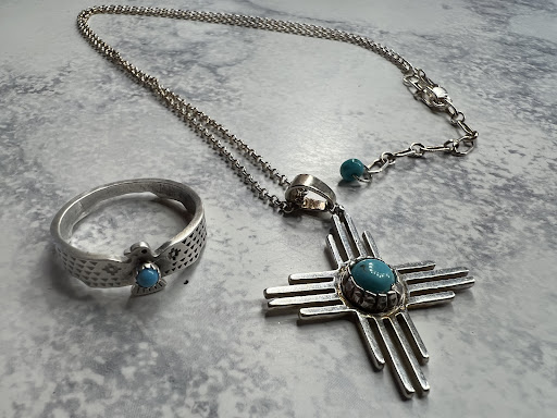 Read moreBuyer Beware. I would NOT Buy from T.Skies through e-commerce. They're advertising looks & sounds good - but what they delivered to me was junk. I lost $16.95 in two-way postage & returned the "Spirit Ring". I asked for a postage refund. Their PR person Gabs said she personally inspected the ring and it was of the highest quality. That false-claim tells me everything I need to know about Turquoise Skies, Albuquerque. They'll mail that ring out again. If you purchase the Spirit Ring don't expect it to have any black matrix-inclusions, don't expect the sterling silver to polish to a shine. The ring they sent me was obviously up-sized & appeared to have been pounded out (with a mallet) on a mandrel. The edges were wider on one side than the other (funneled). Because it was poorly stretched, it was thin on two sides & oval shaped. I took it to a well-established (25 years) trading-post that sells Quality Native-American Artisan Jewelry. When I showed it to (name withheld) she laughed. She's worked there for 13 years. She placed it on a display case that was tilted and let it roll. That ring wobbled back and forth like a drunken sailor. Ridiculous. Then & there I bought my daughter a beautiful (similar) ring for her birthday That's all I was looking for in the first place. At Turquoise Skies, I lost money and they lost nothing. And it would seem . . . this...