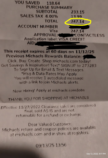 Check out is Self Check Out. Employees are nearby if help is needed. Employees are wonderful, helpful, sweet- a great place to work. I hear they can always use more.... Michaels has an App available. I highly highly recommend signing up for Michaels Rewards membership. You earn points with each purchase. Points add up to increments of $5. Sort nice to be acknowledged for being a loyal customer.