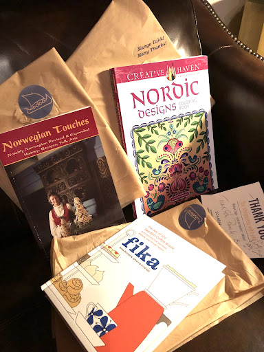 The package arrived in perfect condition and I was stunned to find each book individually wrapped in tissue with a Nordic sticker! All the books were protected in a bag, as was the jacket separately and a sweet note was included with the receipt. What a fine example of Scandinavian care and character.