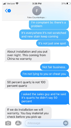 We gave them 2 stars because we still like the counter top.