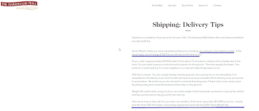 Attempted to receive a quote for some flooring and was made aware of the following: Extremely lousy & unprofessional attitude from the individual who picked up the phone to have a quote sent out. I suspect if you don't have to communicate with this individual this could be a decent place to purchase hardwood flooring and other products. However, the lack of customer communications is extremely poor. Also, be aware they will not unload the flooring from their truck and expect you to have 3 people (Or more depending on your Square Footage & Length of your flooring order) to unload being rushed the whole time of delivery. If you do not unload quickly (15 minutes maximum) they will bill you starting at $100.00. See...
