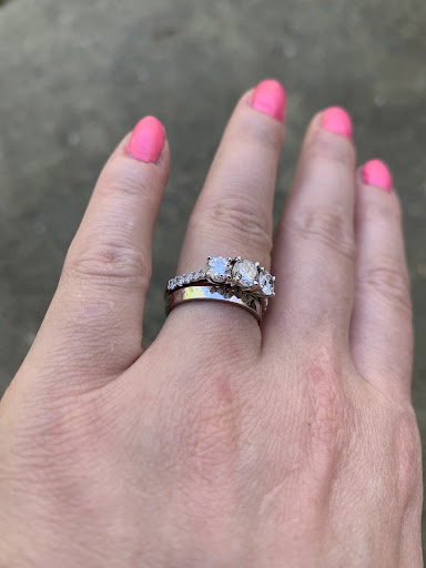 My engagement band was dented and the prong kept breaking (I knock into things a lot and have a toddler, so yeah). So I haven’t worn my engagement ring in about 2 years. Oops.