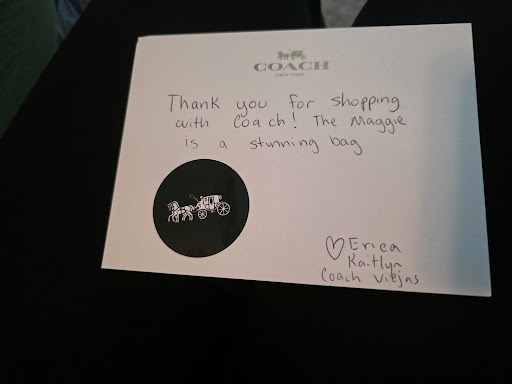 Read moreI have been looking for a particular bag that in no longer available online. I contacted Coach customer service and they directed me to this store. The young man who answered the phone and assisted me was phenomenal. Not only did he was me through the ordering process, he also helped me trouble shoot my technology issues as well. Thank you sooooooo much for...