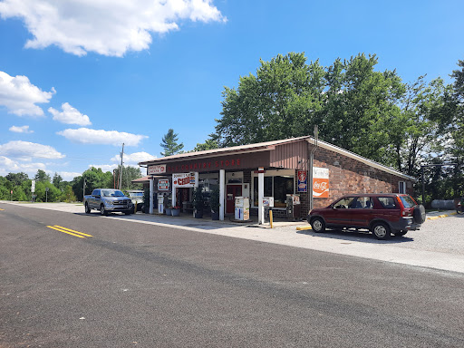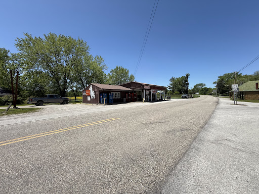 This place was really cool. It was run by this feller in a Broaster Chicken apron who was polite, let me sit in his store to drink my coffee and eat a quick candy bar. While I was there, a local gardener came in from working on his 'mater seedlings. He said he'd already sold 4 trays today. The ball game was on (I'm not much of a basketball fan so I didn't see who) and they were chatting idly about it when a group of folks came in. The gardener said "prolly just looking for a bathroom" but the man who came in looked like a farmer himself, and ordered coldcut sandwiches, which the owner cut to order and put on fresh white bread from a bag. This was the kind of place that people hang out. He had a gas area stove with a pipe vented to the outside wall that kept the place warm. Shelves stocked groceries and some hardware. There was more cool stuff hanging on the wall behind the counter...not like fashion lighters you see in today's Superamerica, but like leather straps for tethering your pocket watch. Neat place. If you're ever running thru there, I suggest you stop in. They have a line of chairs at a windowside shelf-table where anyone is welcome to sit and eat, and...