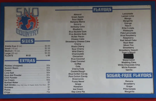 Read more100s of high quality great tasting flavor combos liberally poured over fluffy ice. I appreciate the teens working the hut and learning responsibility. The 4 star rating is pretty much knit picking and related to the worn out picnic benches and the long line that stacks up after school. Check this place out for a great snocone at a honest price. Lastly tip any teen you see working these days because it's...