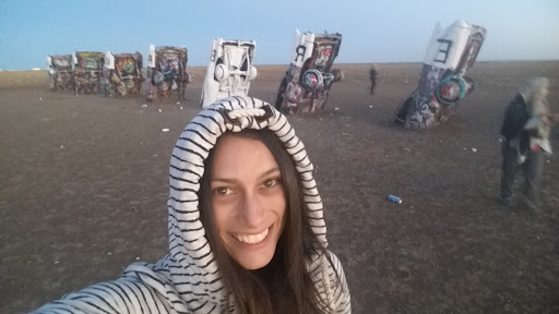 Fun little place to hit up mid road trip. There is a small gravel path, parking is roadside. It is accessible from two different directions. Coming from the East is more paved. If you come in from the West it does look like you may have gone the wrong direction: all gravel, bumpy, lots of potholes. Low-rise cars beware go very slowly, watch the ground especially if it's still dark, you can drive between the tire marks a bit higher and more smoothly but you'll still need to tack a few angles! Sunrise is a great time to visit but make sure to bring a flashlight. There is plenty of litter and you don't want to get hurt. Bring some paint or a chisel to leave your mark, please clean up after yourself! March it was definitely chilly out and dew on the grass. And city kids heads up, so that you aren't startled, it is a farm nowhere kind of place, critters...