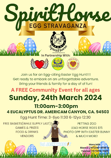 •Easter Egg Hunt for kids of all ages •3-6 years old egg hunt to begin at 11:30am •6-12 year old egg hunt to begin at 12:30pm!! • Lead horse rides & petting zoo 🐇🐐 🐎 •Arts and crafts 🖼️ 🎨 •Games and prizes 🥇🏆 •Refreshments 🥤 🌮 🍔 •DJ Jack Wabbit 🎶 •VENDORS & Much MORE 🛍️🎈